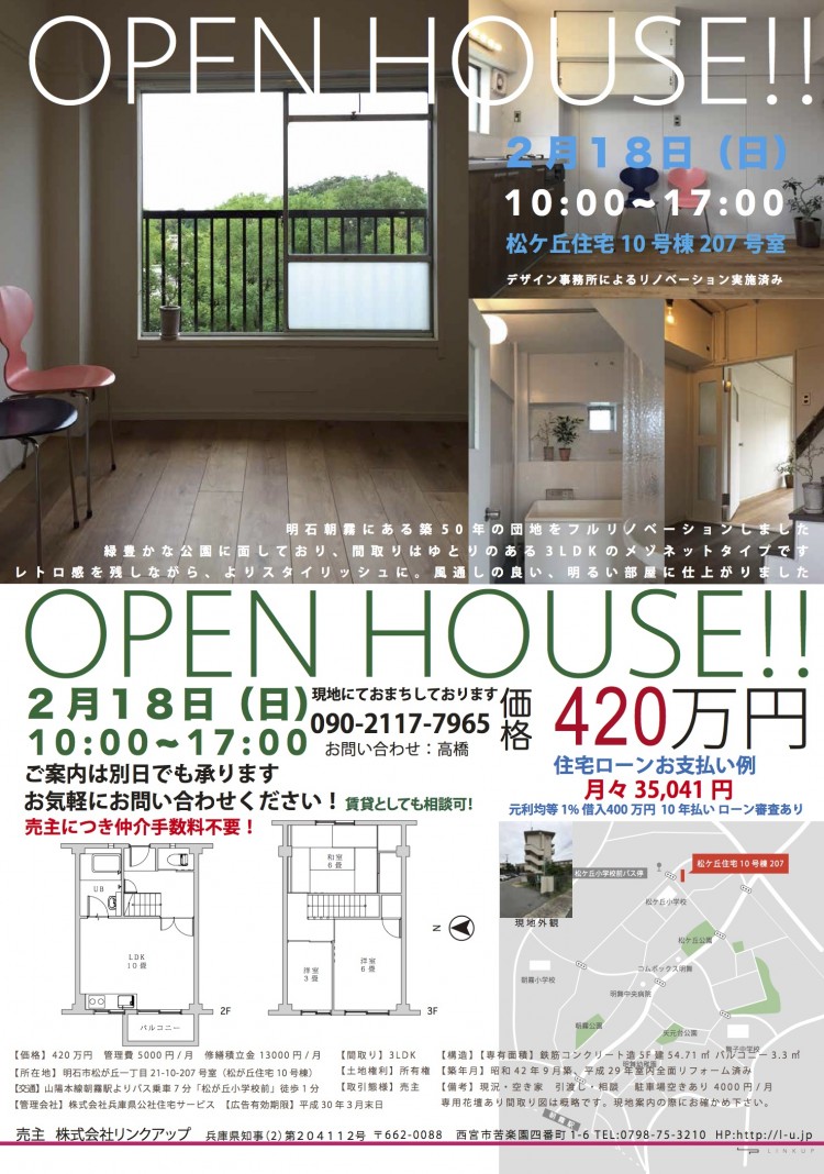 【2月18日開催】OPENHOUSE!! 松ケ丘住宅